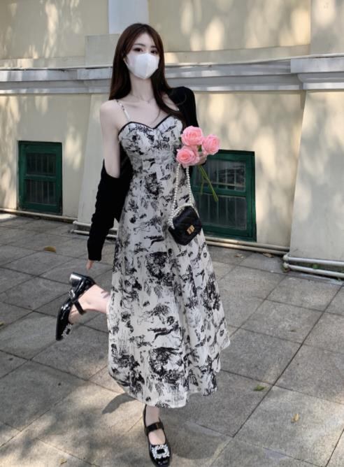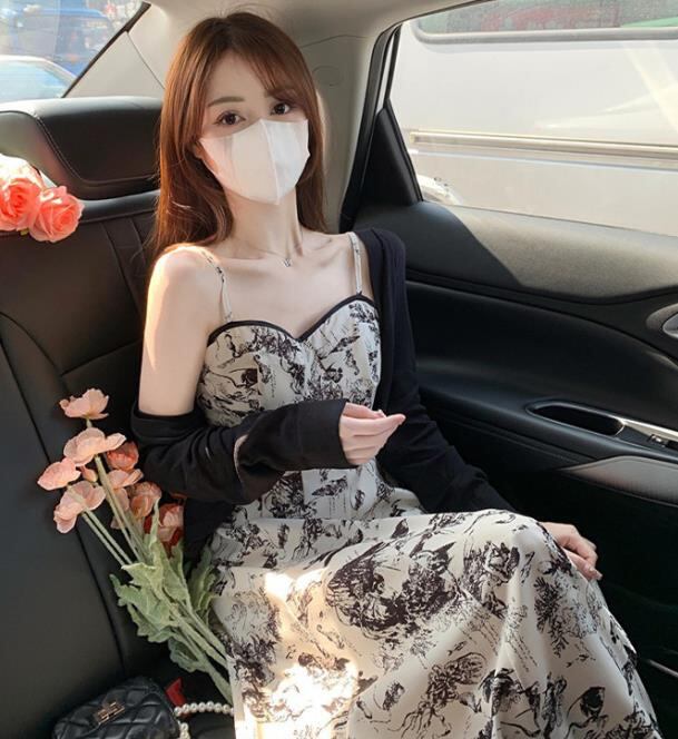 2023春夏新作 女 レディース 袖なし 吊りスカート ロング ワンピース 台型スカート セット