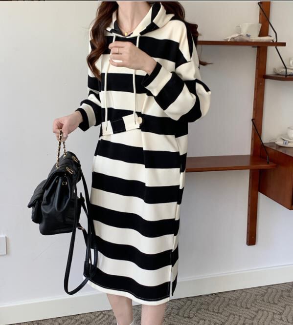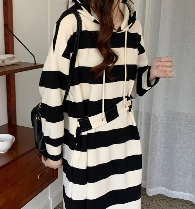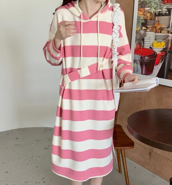 春秋新作 女 レディース ハイウエスト 長袖 帽子付け スウェット ロング ワンピース 台型スカート
