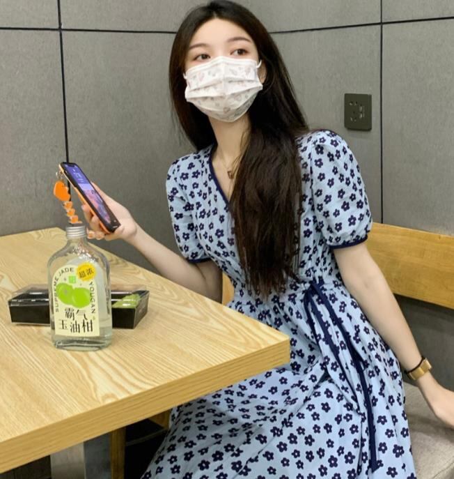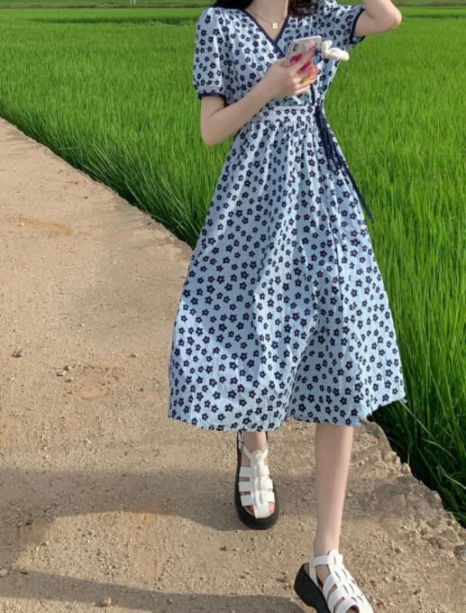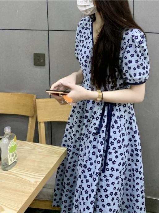 2023春夏新作 女 レディース ハイウエスト 半袖 花柄 ロング ワンピース 台型スカート