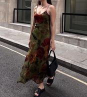 2023春夏新作 女 レディース ハイウエスト 袖なし 吊りスカート ロング ワンピース 台型スカート
