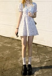 春夏新作 女 レディース ハイウエスト 半袖 ミニ ワンピース ドレス 台型スカート S-L