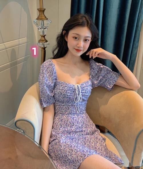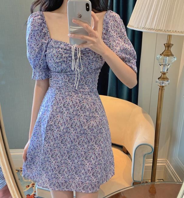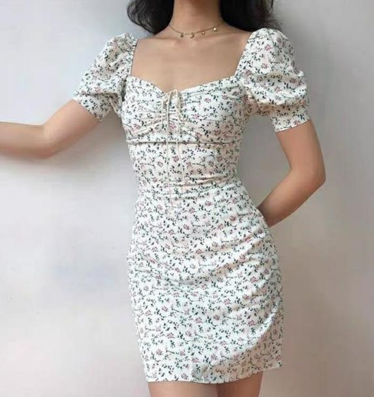 春夏新作 女 レディース ハイウエスト 半袖 花柄 ミニ ワンピース ドレス タイトスカート M-2XL