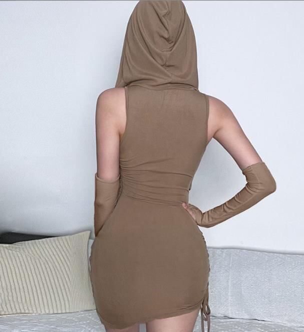 2023春夏新作 女 レディース ハイウエスト 袖なし 手袋付けミニ ワンピース ドレス タイトスカート