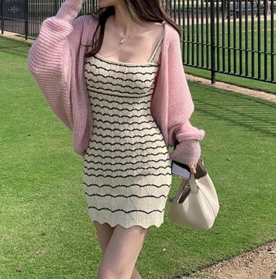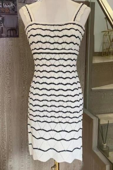 春夏新作 女 レディース 袖なし ニット 吊りスカート ミニ ワンピース ドレス タイトスカート