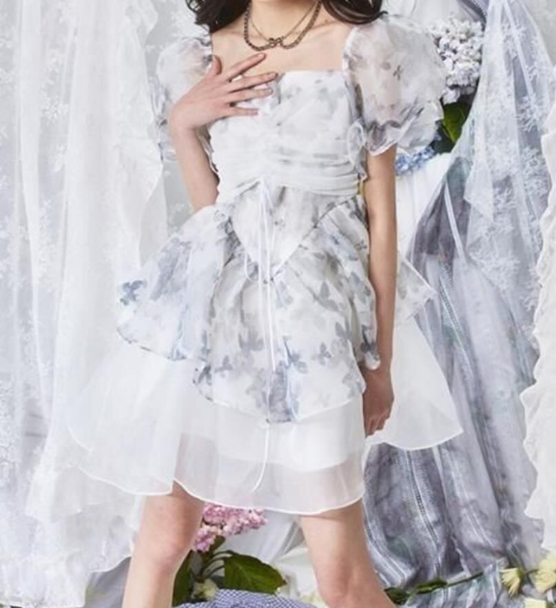 春夏新作 女 レディース ハイウエスト 半袖 パフスリーブ ミニ ワンピース ドレス 台型スカート S-XL