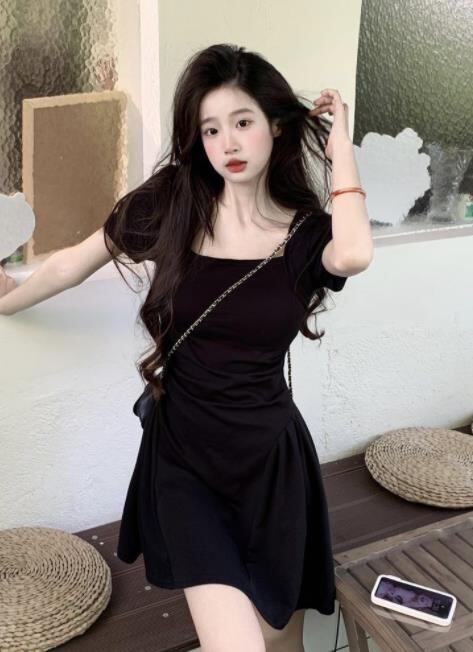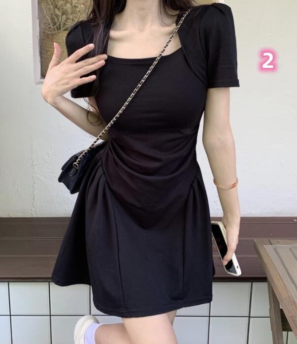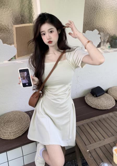 2023春夏新作 女 レディース ハイウエスト 半袖 ミニ ワンピース ドレス 台型スカート