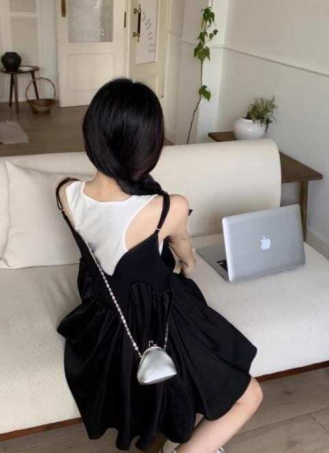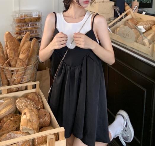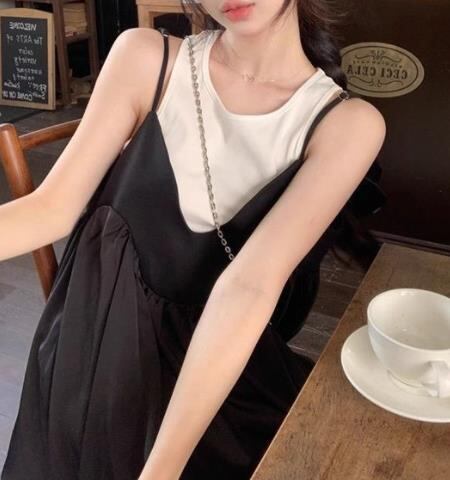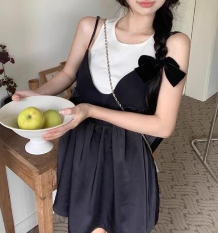 2023春夏新作 女 レディース 袖なし 吊りスカート ミニ ワンピース ドレス 台型スカート セット