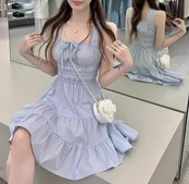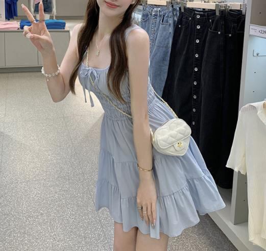 p-2023春夏新作 女 レディース 袖なし 吊りスカート ミニ ワンピース ドレス 台型スカート セット