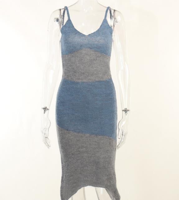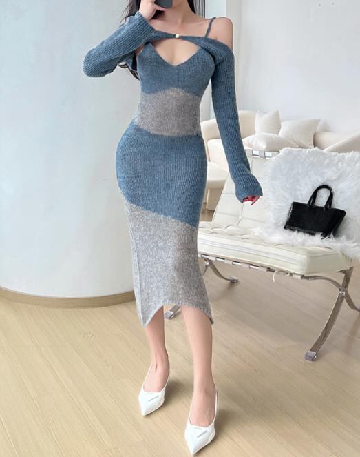 秋冬新作 女 レディース ロング ワンピース 袖なし ニット 吊りスカート+ コート 2点セット