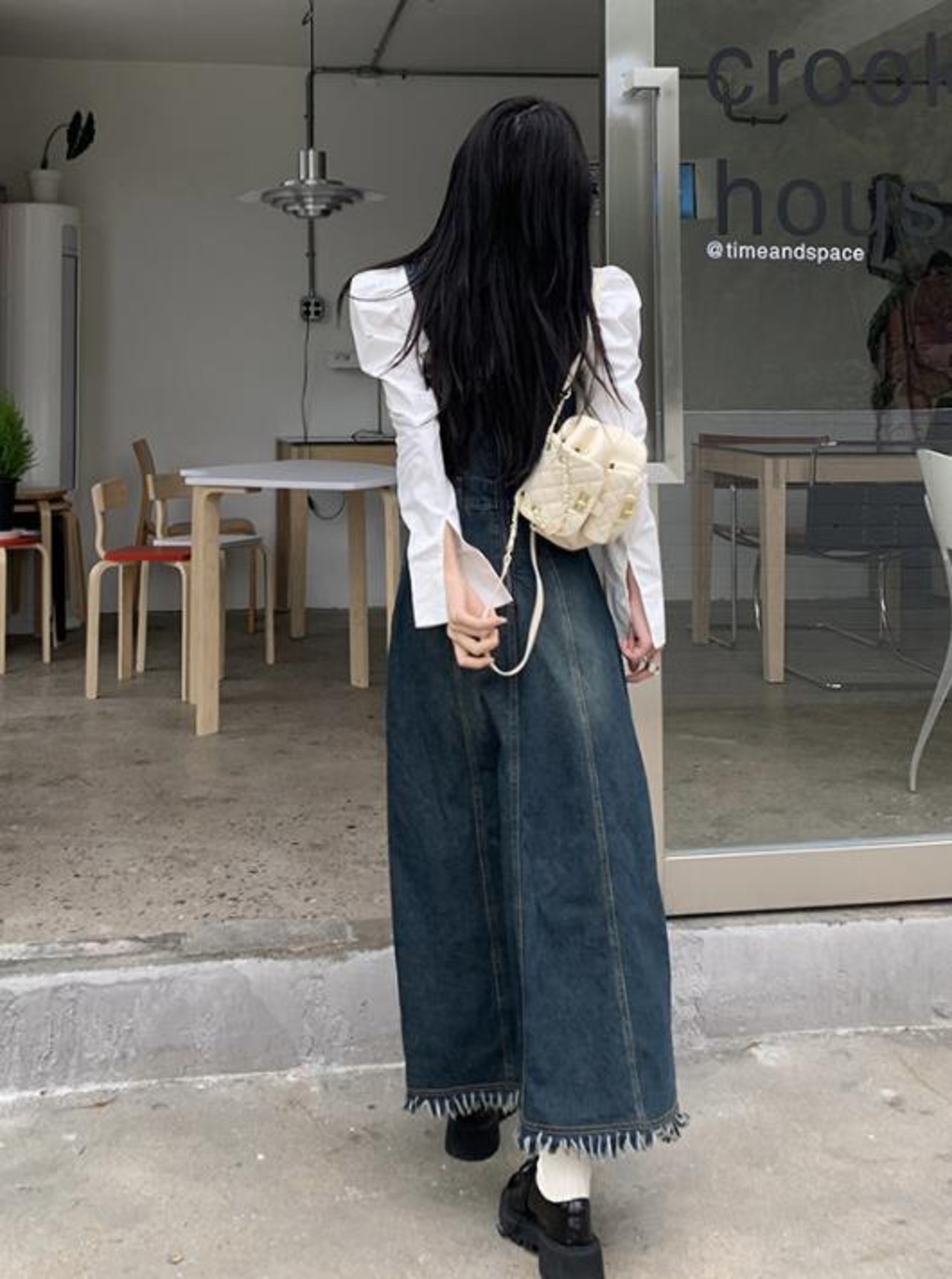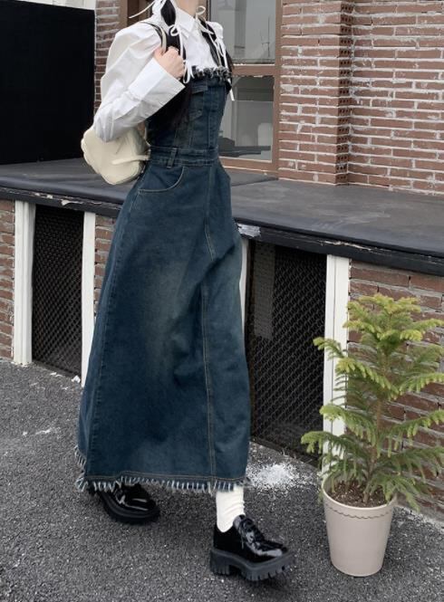 2023春秋新作 女 レディース ハイウエスト 袖なし デニム ロング ワンピース 台型スカート セット