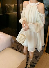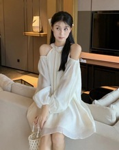 2023春秋新作 女 レディース ハイウエスト 長袖 ミニ ワンピース ドレス 台型スカート S-L