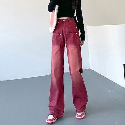 デニムパンツ ヴィンテージ ジーンズ レディース ストレート ルーズ スパイシー ハイウエスト ワイドパンツ