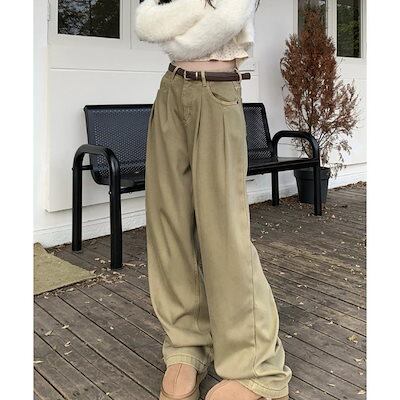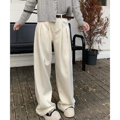 デニムパンツ レディース ジーンズタックワイドデニムパンツレディース韓国風