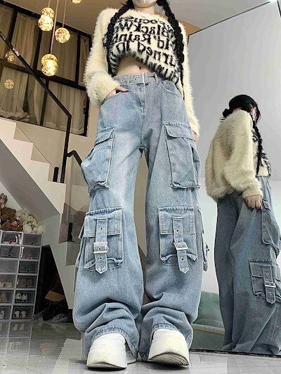 2024秋冬 デニムパンツ ボトムス ハイウエスト ジーンズ K-POP ファッション系韓国風スタイル ゆるダボウェア練習ジーンズ シルエット加工ゆったり レディース カジュアル型 春夏 メンズライク | DOKO-ME