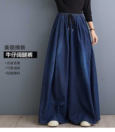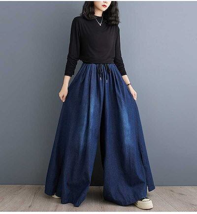 「ファットガール」 2024秋冬新品 ワイドパンツ ハイウエスト ゴム フレア スリット 大きいサイズ 体型ーカバー レディース ブーツカット ロングパンツ メガ割