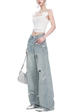 2024秋冬 韓国トレンドデニムパンツ ボトムス ジーンズ デザインファッション系スタイル ゆるダボ ジーンズ シルエット加工ゆったり レディース カジュアルコーデ 春夏 メンズライク | DOKO-ME
