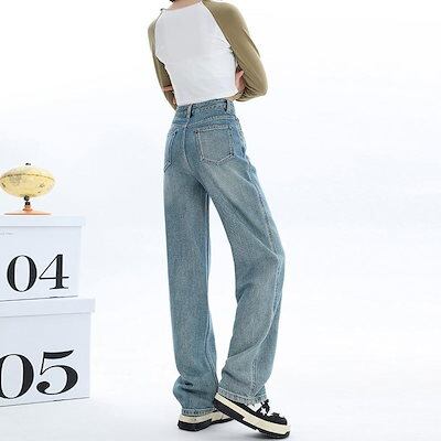 大人気 デニムパンツ 秋 新作 デニムボトムス ニューデザイン ストレートパンツ 春秋 ハイウェスト 体型カバー ファッション モップパンツ ワイドパンツ ジョガーパンツ 体型カバー レディース 脚長 | DOKO-ME