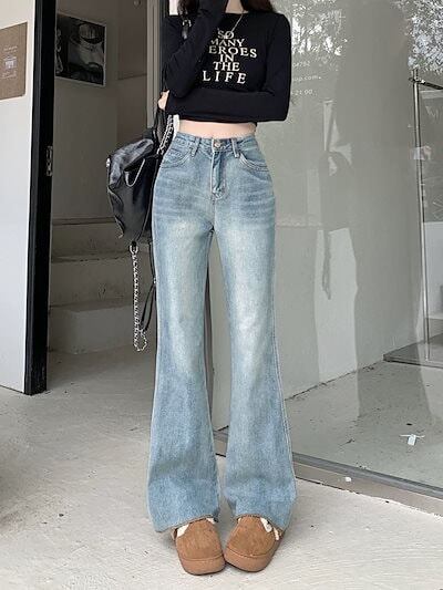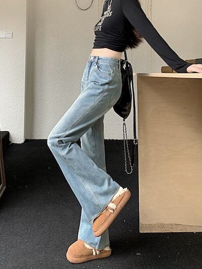 新作 秋 アメリカンブルーのワイド脚フレアジーンズレディース新型ハイウエストでゆったりとした着痩せストレートの毛並みが長めのパンツ デニムパンツ メガ割