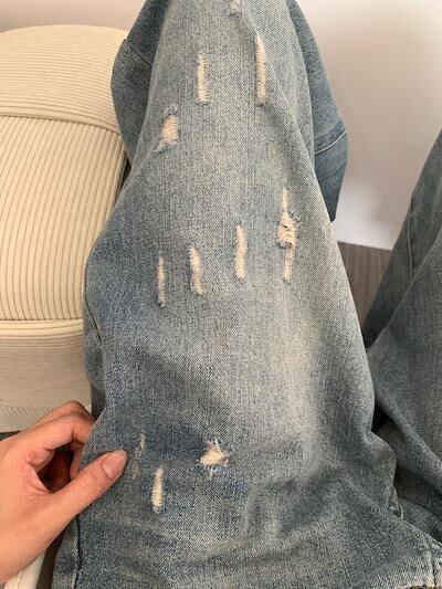 デニムパンツ ワイドレッグジーンズレディース破れたデザインセンス緩いドレープストレートジーンズパンツ