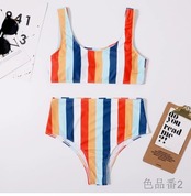 ビキニ 水着 バンドゥブラ 切り替え バイカラー ストライプ柄 シンプル ビーチ 配色 ボーダー柄 ライン