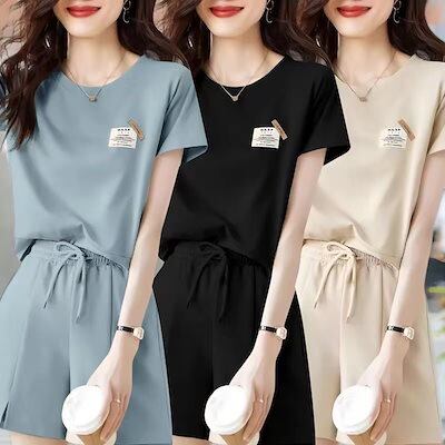 春コーデ 春服はコレをチョイス カジュアル セットアップ レディース 快適 スウェット上下セットセットアップ ファッションTシャツ 2点セット