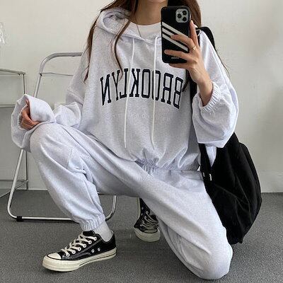 ファッションセットアップ レディース 快適カジュアル 大きいサイズ スウェット上下セット 2点セットゆったりアルファベット