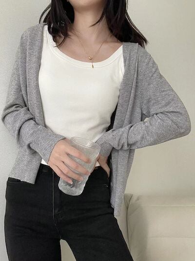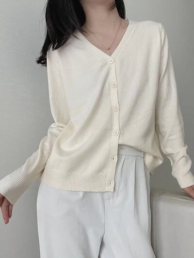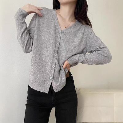 2025春Vネックニットカーディガン レディース アウタートップス 無地セーターだるい風ゆったりコート
