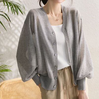 2025春のニットカーディガンレディース日焼け止めシャツVネック長袖カジュアルコート