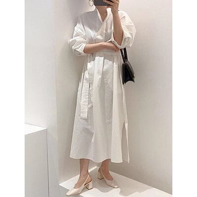 2025春の新作長袖ホワイトシャツワンピースレディース シンプルな雰囲気カジュアルなブラウス ファッション