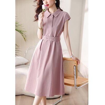 2025春の新作フランスシャツワンピース レディース シンプルな雰囲気カジュアルな ファッション