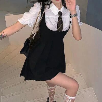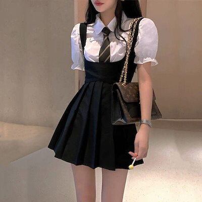2025春のワンピーススーツレディース カジュアル JK制服キャミソールプリーツスカートシャツ2点セット
