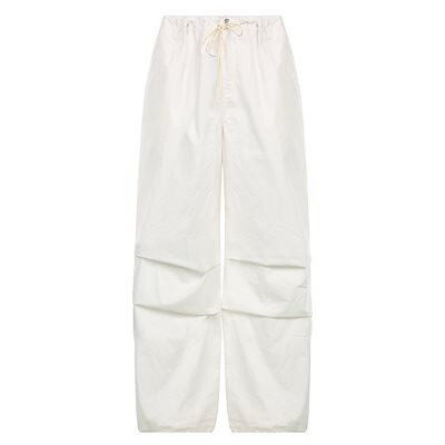 2025春夏 ウエストゴム ハイウエストカーゴパンツ ボトムスワイドパンツベイカーパンツストレートゆったりルーズ 韓国カジュアルスポーティーメンズライクレディースファッション