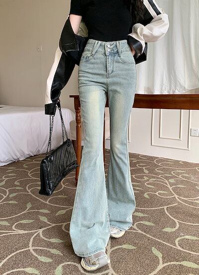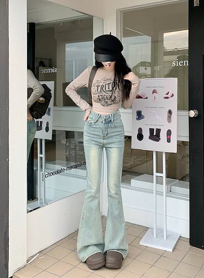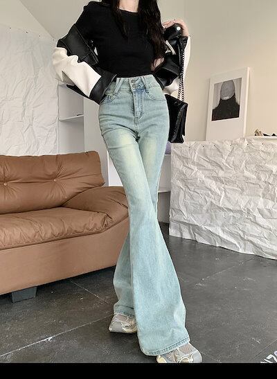 2025春夏 デニムパンツ ボトムス ハイウエスト ジーンズ K-POP ファッション系韓国風ファッションウェア練習ジーンズ シルエット加工ゆったり レディースカジュアル型春夏メンズライク衣装