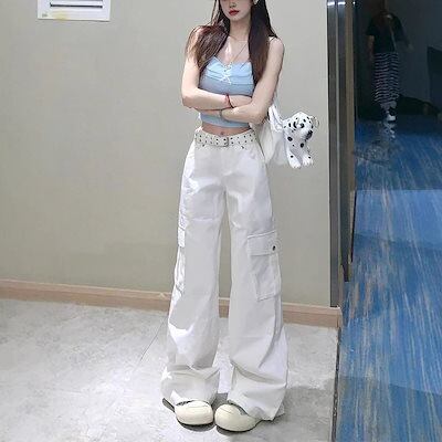 【3日以内出荷】脚長効果!デニムパンツ ホワイト 作業着ズボン レディース 2025年春 ゆったり ワイドパンツ 薄手 百掛け 韓国ファッション