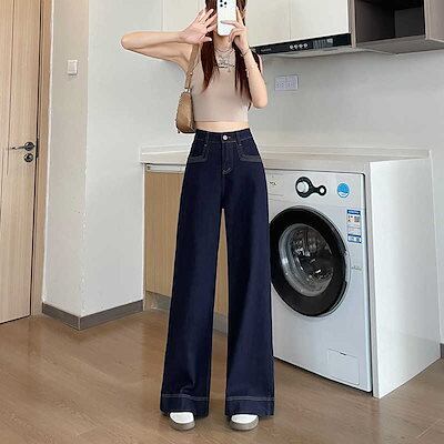【3日以内出荷】脚長効果!デニムパンツ ドレープ デニム ワイドパンツ 春と秋 ハイウエスト ナローバージョン 薄手 ストレッチ ストレート モップパンツ 韓国ファッション