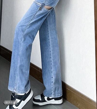 2024 春夏 ハイウエスト デニムパンツ 韓国 レディース ジーンズ 脚長 スタイルアップ カジュアル ファッション系きれいめ
