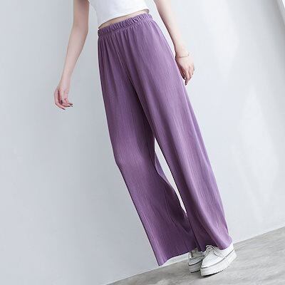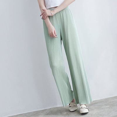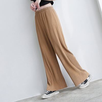 ワイドパンツ プリーツパンツ レディース ゆったり セルフカット ウエストゴム ロングパンツ リラックスパンツ 大きいサイズ 無地 シンプル おしゃれ 柔らかい 快適 着心地 春夏秋冬 13色