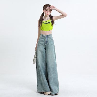 デニムかっこいい!スラックスパンツ2025春の新作レトロ デニムパンツ おしゃれ パンツ レディース ワイドレッグ 見えやせ ハイウエストゆったり 垂れ感