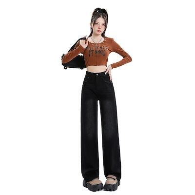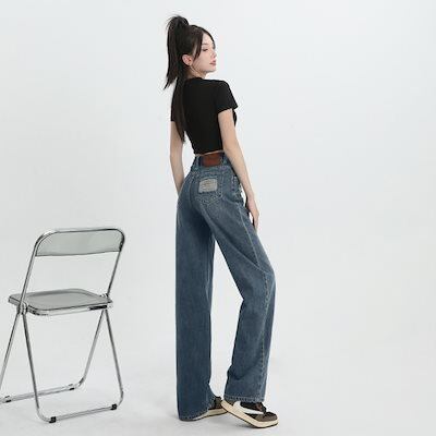 デニムかっこいい!スラックスパンツ2025春 デニムパンツ おしゃれ パンツ レディース ワイドレッグ モップパンツ ハイウエストでゆったり 見えやせ カジュアルパンツ 垂れ感