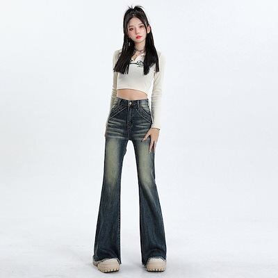 デニムかっこいい!スラックスパンツ2025春 ブラック マイクロラッパ デニムパンツ おしゃれ ハイウエストゆったり見えやせ パンツ レディース 垂れ感 ワイドパンツ