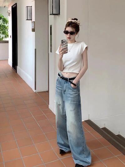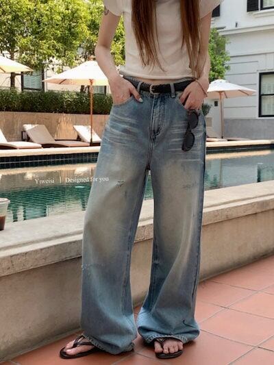 2024秋冬 デニムパンツ ボトムス ジーンズ ファッション系スタイル ゆるダボ ジーンズ シルエット加工ゆったり レディース カジュアル 春夏 メンズライク