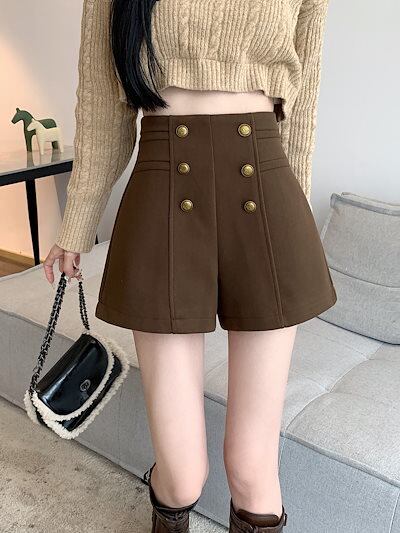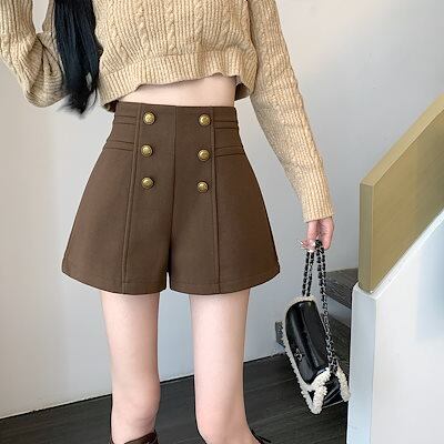 2024秋冬 防寒 あったか 厚手ウール生地パンツショート丈ストレートハイウエストゆったり 脚長美脚細見え春カジュアル黒白韓国系ファッションレディースおしゃれ かわいい衣装トラック