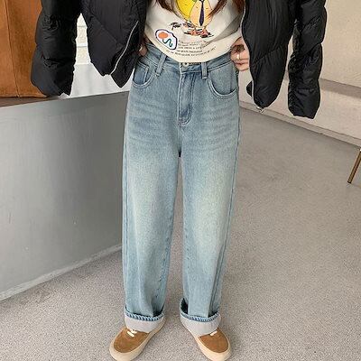 秋 冬 新作 裏起毛 デニムパンツ ロングパンツ レディース ワイドパンツ 裏起毛パンツ 体型カバー 着痩せ ゆったり 韓国ファッション
