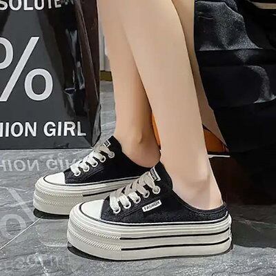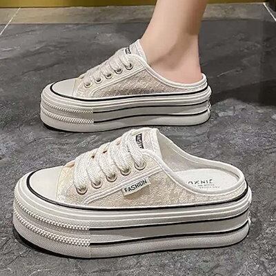 キャンバス レース 厚底 スリッポン かかとなし メッシュ レディース 軽い 白 おしゃれ スニーカー サンダル つっかけ かわいい 軽量 踵なし 歩きやすい 履きやすい カジュアル