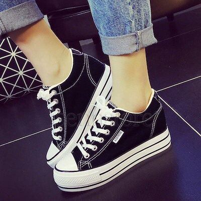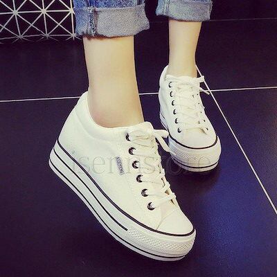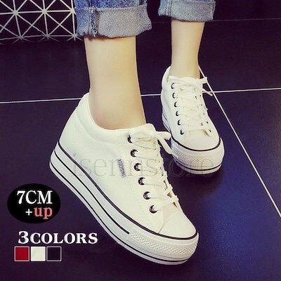 非常に人気がある 厚底スニーカー 6cmインヒール ウェッジソール カジュアルシューズ キャンバス素材 レディース スニーカー ズックシューズ レースアップ