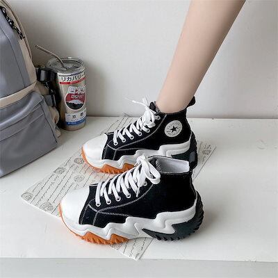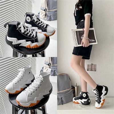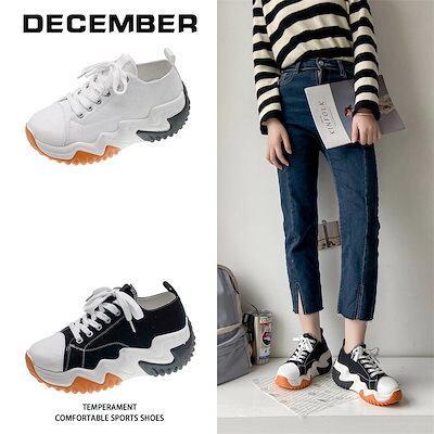 工ガ割-人気韓国ファッション 厚底シューズ 厚底スニーカー ファッション キャンバスシューズ レディース かわいい 厚底 スニーカー カジュアルシューズ