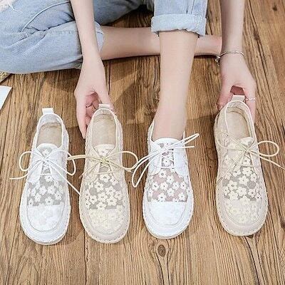 2025福袋-スニーカー レディース シューズ 靴 スリッポン レース 花柄 キャンバス 透け感 通気 耐摩耗性