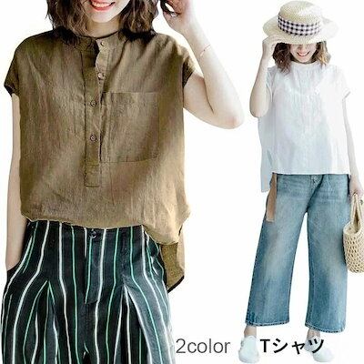 【急速出荷】Tシャツ レディース Tシャツ 半袖 ラウンドネック 無地 薄手 バストポケット ゆったり お洒落 通気性 爽やか トップス プルオーバー 春夏 夏新作