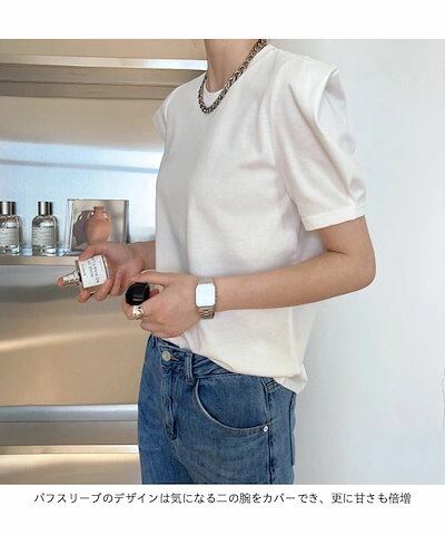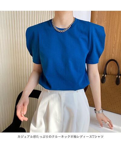 【急速出荷】Tシャツ 半袖 レディース パフスリーブ 半袖Tシャツ 夏 カットソー クルーネック 無地Tシャツ オフィス トップス サマーTシャツ レトロ