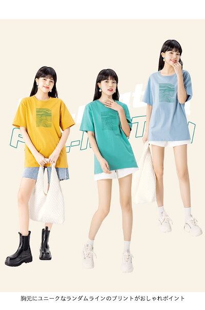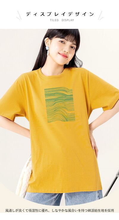 【急速出荷】半袖Tシャツ レディース Tシャツ 夏 ゆったり プリントTシャツ 半袖 カットソー クルーネック サラサラ コットンTシャツ 女性 夏Tシャツ サマーTシャツ 綿混 ゆるTシャツ イエロ